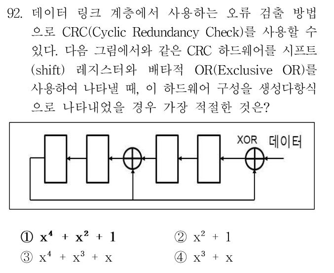 이 문제는 CRC(Cyclic Redundancy Check)의 기본 원리와 코드워드(Codeword)의 구성을 이해하면 아주 간단하게 풀 수 있는 문제입니다. 계산 과정을 길게 거칠 필요 없이 정의만 알면 바로 답이 보입니다.