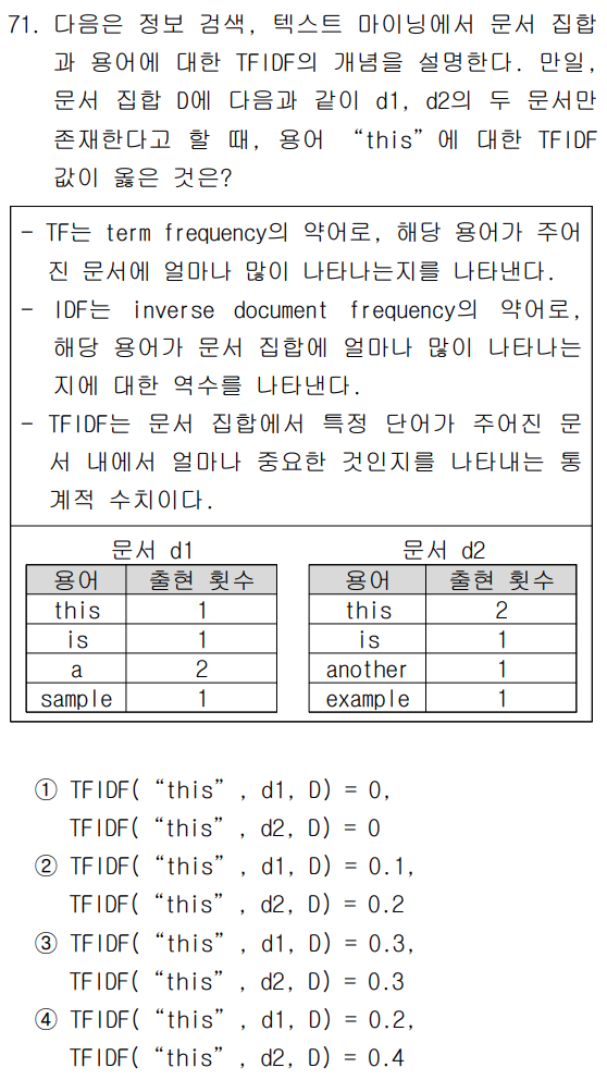 만약 시험 문제에서 어떤 단어의 TF-IDF를 묻는데, 그 단어가 제시된 모든 문서에 한 번씩이라도 다 들어있다면 계산할 것도 없이 IDF는 0, TF-IDF도 0입니다. 이 원리를 알면 5초 만에 풀고 넘어갈 수 있습니다.